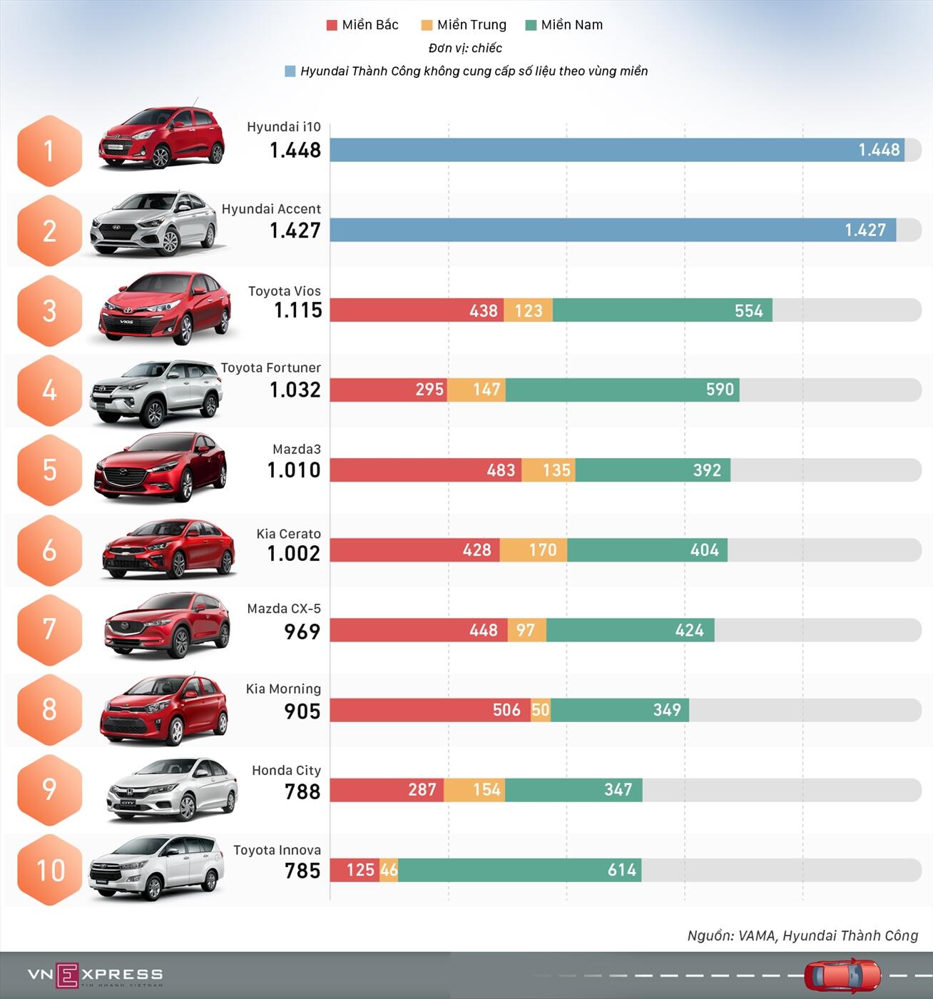 10 ôtô bán chạy nhất Việt Nam tháng 4 - Vios bị Accent vượt mặt